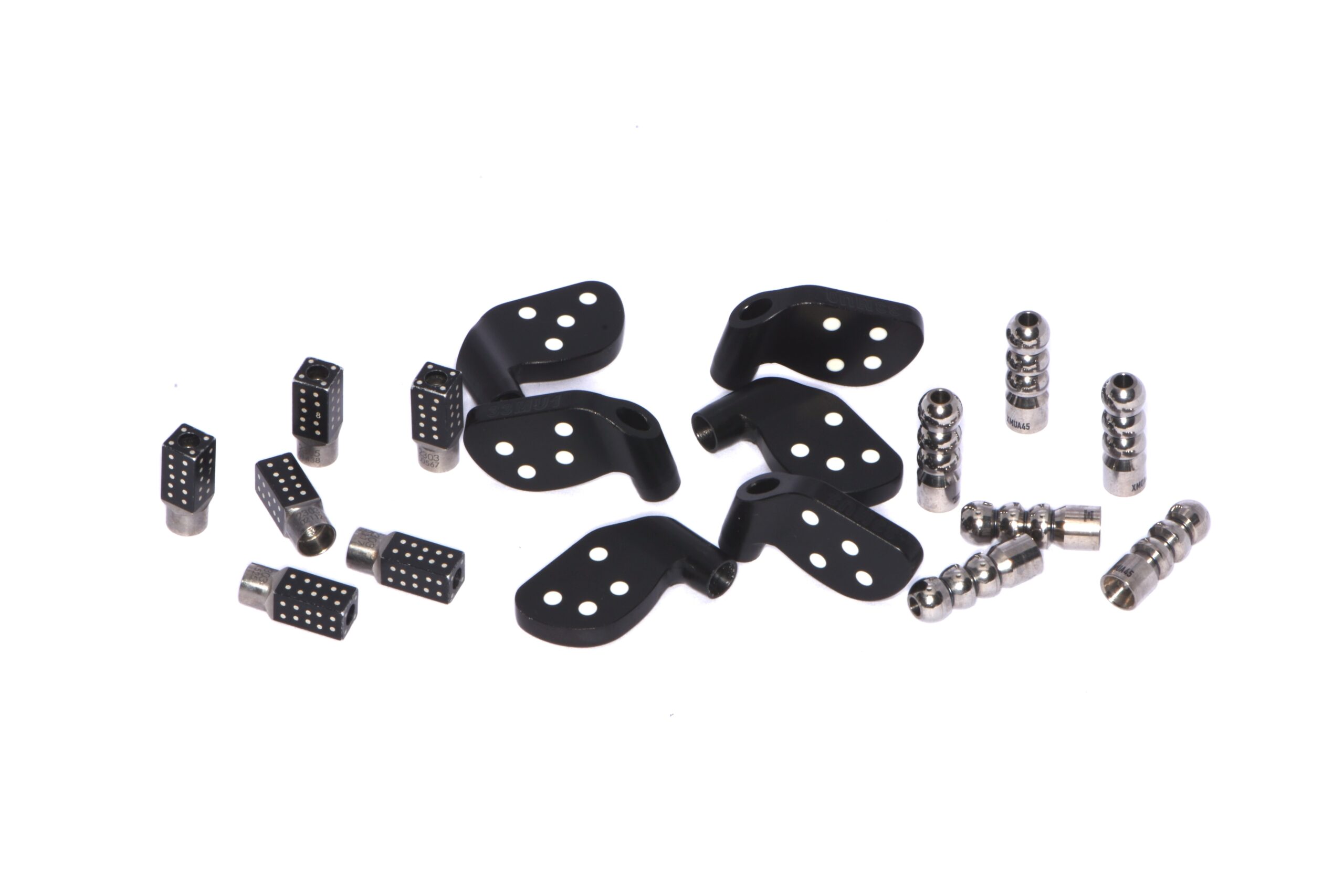 (b). High-accuracy coded scan body (HACS) has a hexagonal vertical shape and a multi-faceted horizontal part with black-and-white fiducial markers for accurate recognition. Automatic alignment of the HACS onscreen, converting their positions into implant coordinates according to the selected abutment type. To ensure simultaneous capture, HACS of different lengths (long, medium, short) are available for the radial pattern without touching each other.