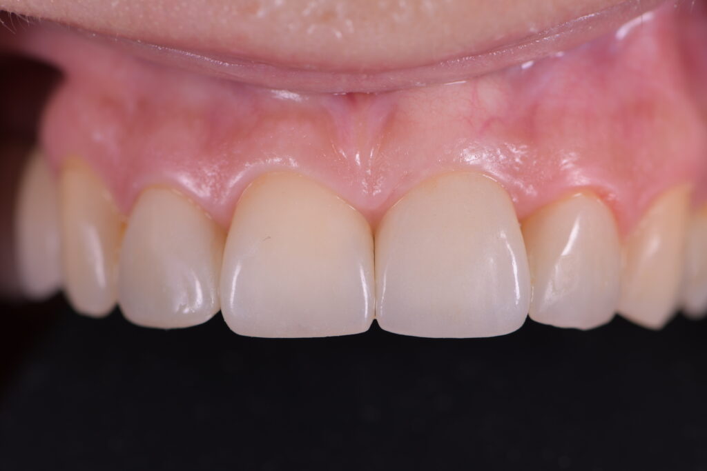A carefully designed emergence profile is a key element of implant-supported restorations (Gonzalez-Martin et al., 2020) and should already be considered when selecting the correct implant position (Puisys et al., 2023). When designing the emergence profile of an implant-supported restoration in immediate scenarios, attention to the critical and subcritical contours is essential for optimal soft tissue outcomes. The critical contour, located just below the gingival margin, supports the free gingiva and defines the esthetic emergence of the crown. It should be flat to slightly convex to maintain gingival architecture without exerting excessive pressure. The subcritical contour, which extends from the implant platform up to the critical contour, should be concave to create space for soft tissue healing, enhance vascularization, and accommodate connective tissue grafts. Together, these contours guide soft tissue shaping, promote biological integration, and ensure long-term esthetic stability, with digital tools now enabling their precise customization during prosthetic planning (Gonzalez-Martin et al., 2020). This approach significantly shortens intraoperative time by eliminating the need for provisional pick-up, chairside design of emergence profile and finishing. When connective tissue grafts are necessary in immediate implant placement protocols with a thin biotype, the provisional crown should be designed to allow space for the graft, facilitating optimal soft tissue healing and integration. This immediate provisional is replaced with the final implant-supported restoration after the healing period (Figures 6, 7).